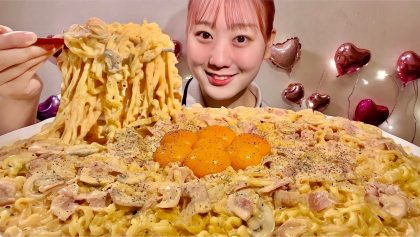 #12 0% EatingMouth SoundsMukbangRoleplay3 weeks ago ASMR Creamy Carbonara Buldak Fire Noodles Mukbang