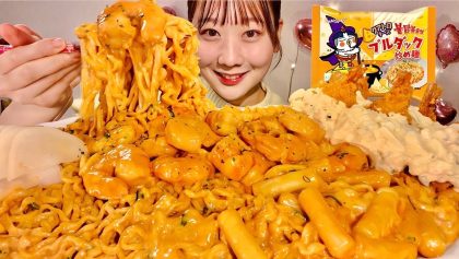 Slurping creamy fire noodles with intense spice, soft chews, and indulgent satisfaction. BesTingle does not own the rights to this aw...
